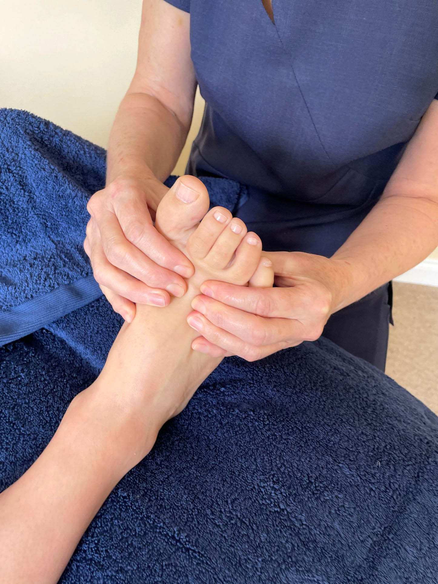 Foot Reflexology is a soothing, holistic therapy involving manipulation of the feet to stimulate the reflex areas. It simply requires the removal of footwear.